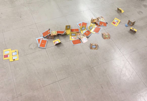 交流会の最後の方ではテーマトークと、「キャプテンリノ」という、折り曲げたカードを積み上げてビルを作るゲームをしました。